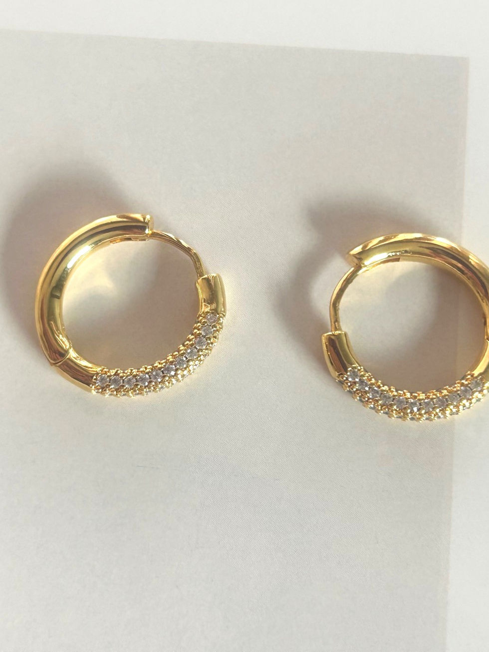 Brinco Argola Cravejada Microzircônias Banho Ouro Amarelo 18K.
