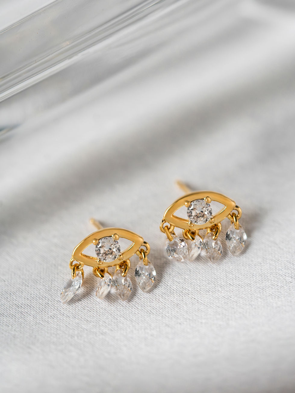 Brinco Olho Cristais com Banho em Ouro Amarelo 18K.
