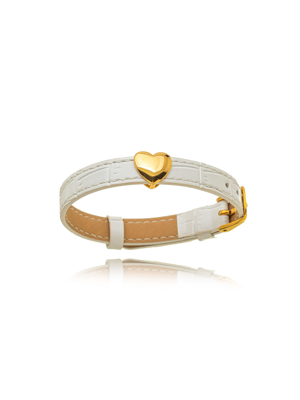 Pulseira branca com pingente de coração, espessura: 1 cm.