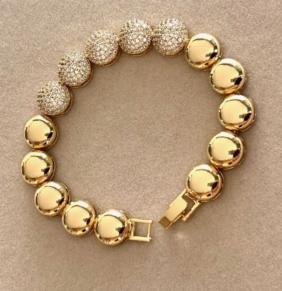 Pulseira Esfera Cravejada com Micro Zircônias em Banho de Ouro Amarelo 18K.